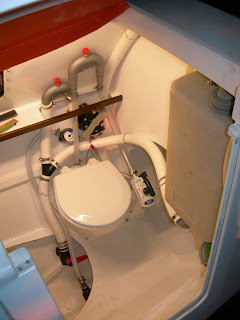 La pose du WC est enfin terminée. Il ne reste plus qu'à faire un test avec une arrivée d'eau pour confirmer le bon fonctionnement des circuits avant à mise à l'eau.